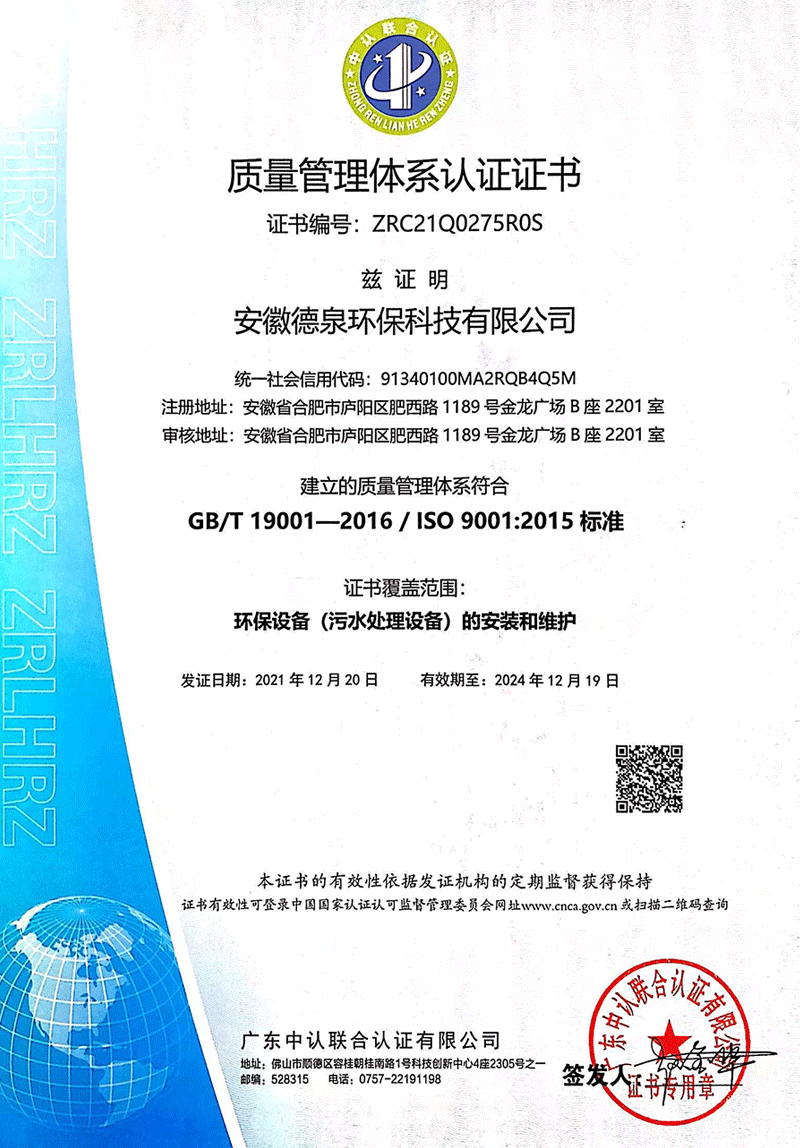 安徽德泉環(huán)保科技有限公司致力于廢水、廢氣、固廢技術(shù)處理研發(fā)、設(shè)計(jì)、施工及運(yùn)營(yíng)管理,從事環(huán)保設(shè)備及設(shè)施的制造和銷(xiāo)售,為環(huán)保項(xiàng)目系統(tǒng)提供專(zhuān)業(yè)的技術(shù)咨詢(xún)和服務(wù)。是一家集建筑勞務(wù)分包,工程總承包(EPC)、項(xiàng)目投資(BOT/PPP)、運(yùn)營(yíng)管理(O&M)于一體的綜合性新型高科技企業(yè)。